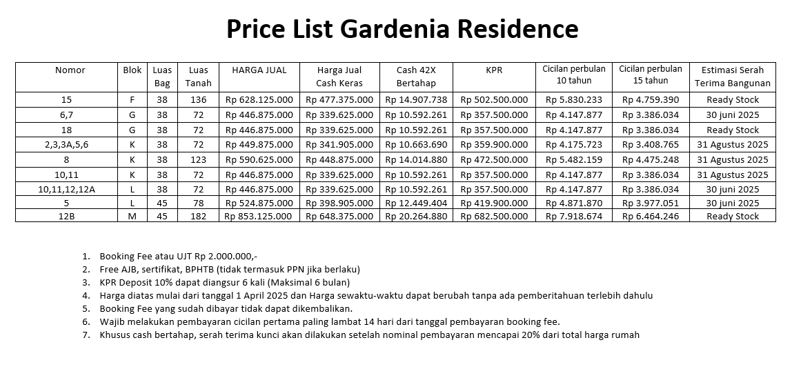 PRICE LIST UPDATE